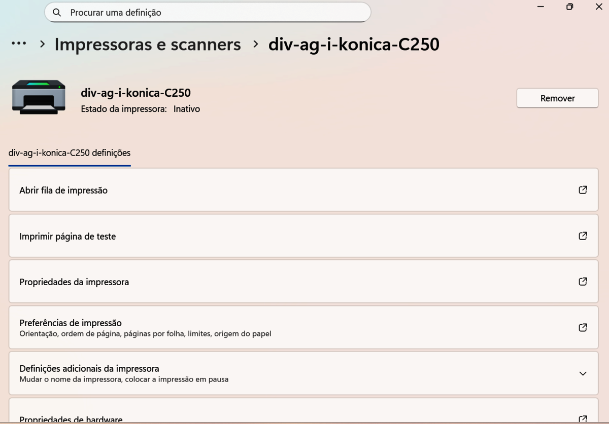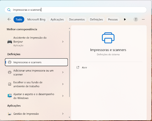 Na barra de pesquisa do Windows, escreva “Impressoras e scanners” e clique em "Enter".